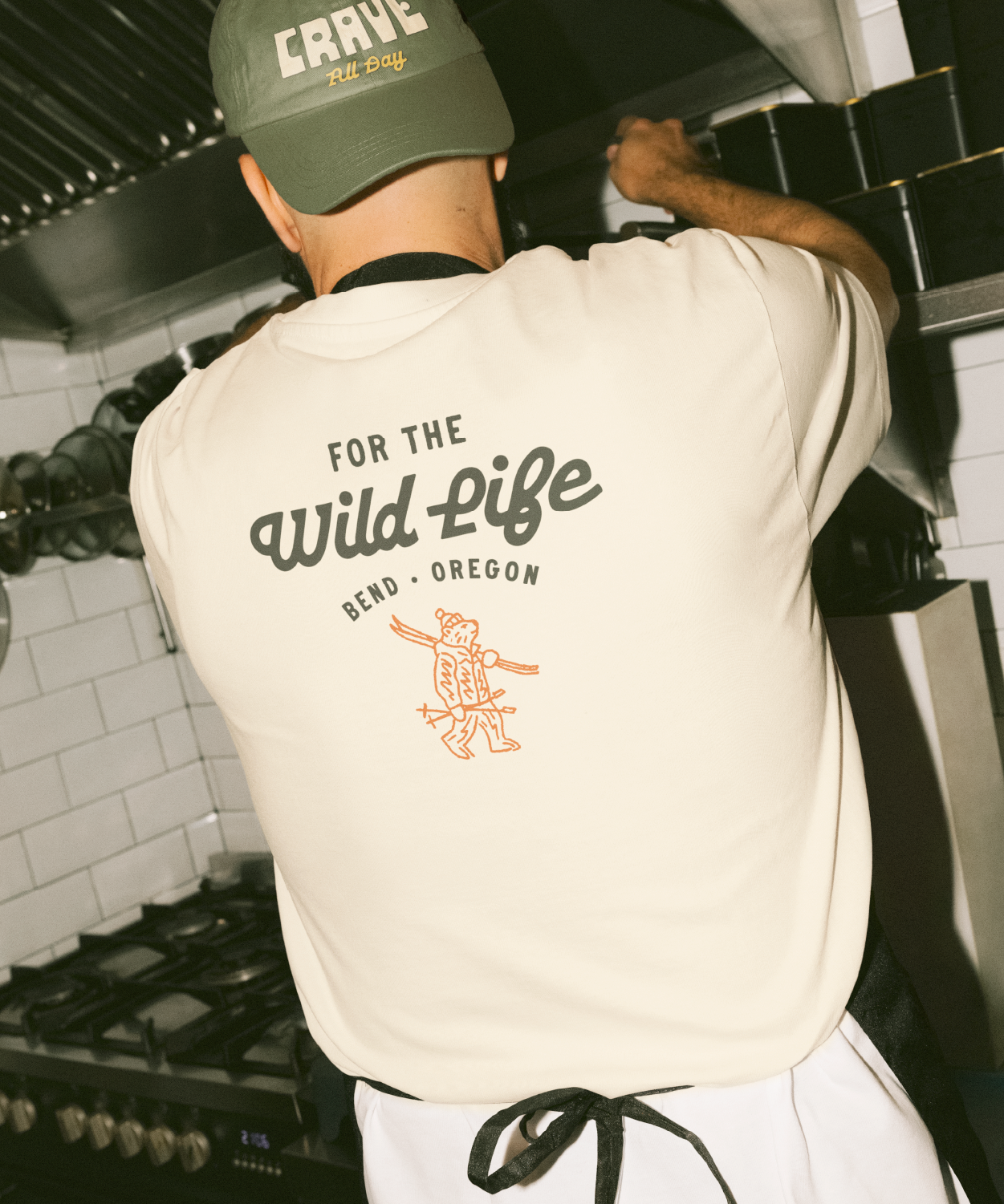 A bold retro wordmark, expressive script typography, and a palette inspired by pine forests, desert sun, river blues, and vintage trail signage create a nostalgic yet modern feel. Messaging such as “For the Wild Life” and “Fuel Up, Wind Down” positions Crave as a social basecamp for locals and visitors alike.