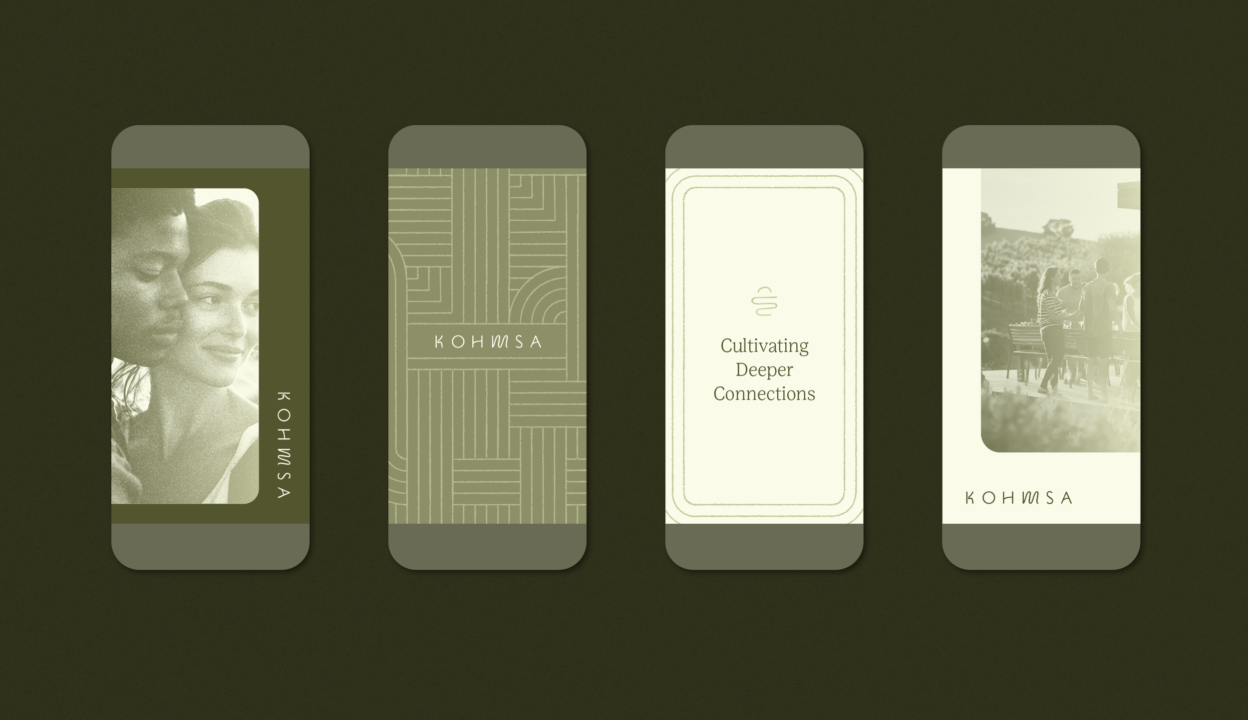 Outerlands Studio developed the brand and visual identity for Kohmsa. Inspired by the authentic connections and myriad journeys guests will experience, Outerlands created a pattern of interweaving paths that meander throughout the visual applications. Overall, the color scheme and cohesive look and feel were designed to evoke a more grounded and intentional approach to hospitality, tying in the Kohmsa guiding principle to “wander well.”